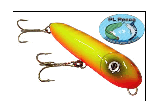 Isca se superfície, ação ZARA,com chocalho, garatéias reforçadas.