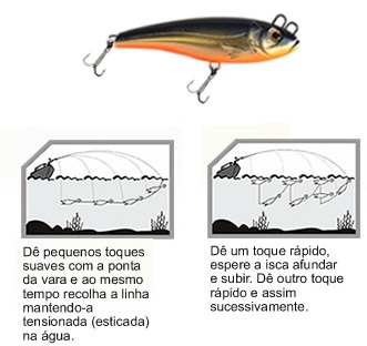 Nado sinuoso atraindo os predadores pela vibração do efeito Ratlin - esferas no interior da isca que produzem o efeito de chocalho.