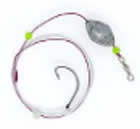 Componentes: 01 girador de Inox # 05. 30 cm de linha Multifilamentos de 100 Libras. 1.20 metros de linha de Nylon 0,60 mm. Miçangas 01 Anzol Wide Gap 1/0 Aço Carbono 01 Chumbada de 40 gramas