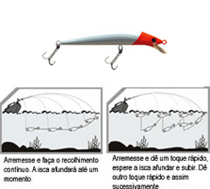 Nado erratil atraindo os predadores pela vibração do efeito Ratlin - esferas no interior da isca que produzem o efeito de chocalho.